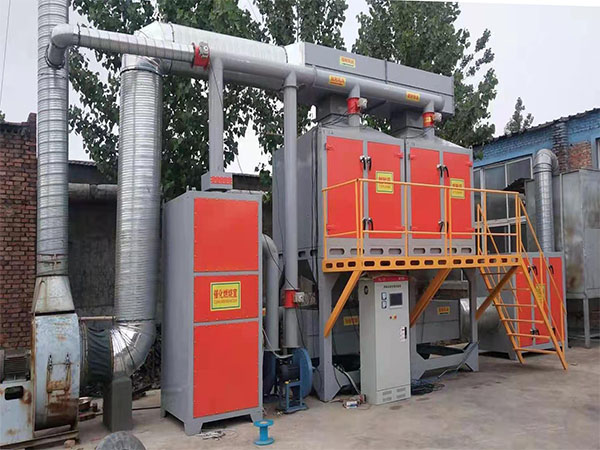 催化燃燒廢氣凈化設(shè)備是指在催化劑作用下燃燒的裝置或設(shè)備。 工作原理: 借助催化劑使有機(jī)廢氣在較低的起燃溫度下進(jìn)行無焰燃燒,使有機(jī)廢氣分解為無毒的二氧化碳和水蒸汽。催化燃燒器電控制系統(tǒng)由PLC控制器、文本顯示器、變頻調(diào)速器、點(diǎn)火器、紫外線傳感器、熱電偶等電控設(shè)備以及風(fēng)機(jī),另外由零壓閥調(diào)節(jié)燃?xì)馀c空氣的比例。詞條還舉例介紹了HC型系列有機(jī)氣體催化燃燒裝置和LF-VC型直接催化分解氧化裝置,以及催化燃燒裝置使用中的不安全因素以及管理措施。 催化燃燒過程: 在化學(xué)反應(yīng)過程中,利用催化劑降低燃燒溫度,加速有毒有害氣體完全氧化的方法,叫做催化燃燒法。由于催化劑的載體是由多孔材料制作的,具有較大的比表面積和合適的孔徑,當(dāng)加熱到300~450℃的有機(jī)氣體通過催化層時(shí),氧和有機(jī)氣體被吸附在多孔材料表層的催化劑上,增加了氧和有機(jī)氣體接觸碰撞的機(jī)會(huì),提高了活性,使有機(jī)氣體與氧產(chǎn)生劇烈的化學(xué)反應(yīng)而生成CO2和H2O,同時(shí)產(chǎn)生熱量,從而使得有機(jī)氣體變成無毒無害氣體。 催化燃燒應(yīng)用: 催化燃燒適用于含有可燃?xì)怏w、蒸氣等有毒有害氣體的凈化,但對于含有大量塵粒、霧滴等有毒有害氣體,容易引起催化床層的堵塞,使催化活性下降,從而降低凈化效率。催化燃燒凈化方法,幾乎適用于所有排放烴類或有臭味化合物的工業(yè)生產(chǎn)過程。 |